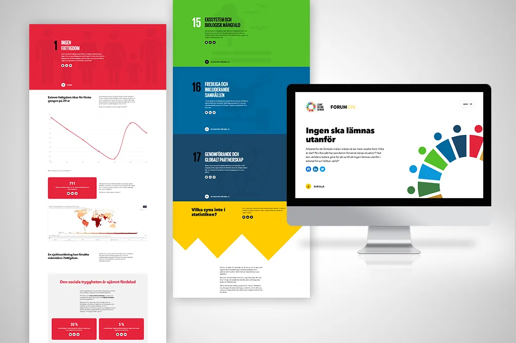 2023 lanserade ForumCiv webbplatsen leavenoonebehind.nu som visualiserar statistik på hur världen ligger till i arbetet med att nå de Globala målen. Där finns också rekommendationer till svenska beslutsfattare.